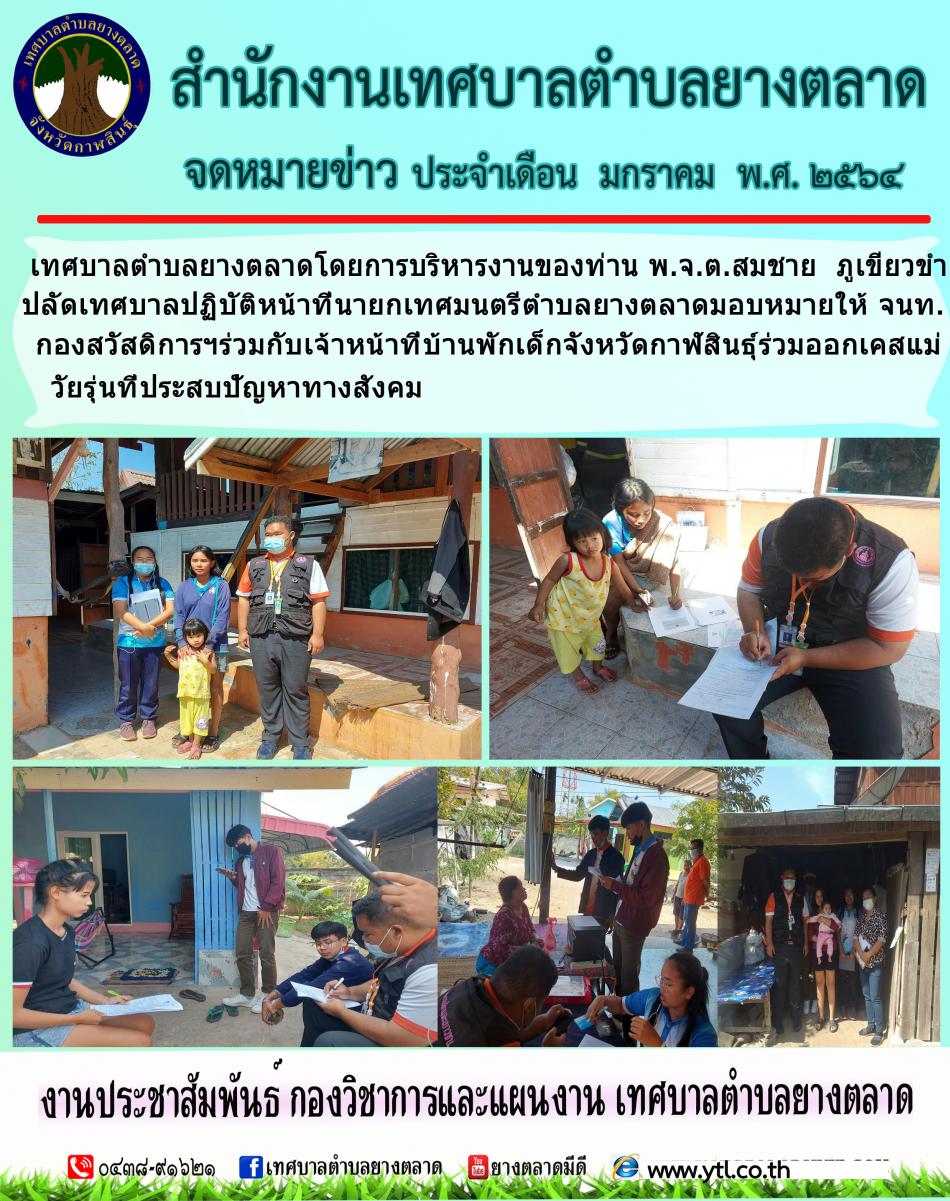 กองสวัสดิการเทศบาลตำบลยางตลาดร่วมกับเจ้าหน้าที่บ้านพักเด็กกาฬสินธุ์ออกเคสแม่วัยรุ่นประสบปัญหาทางสังคม