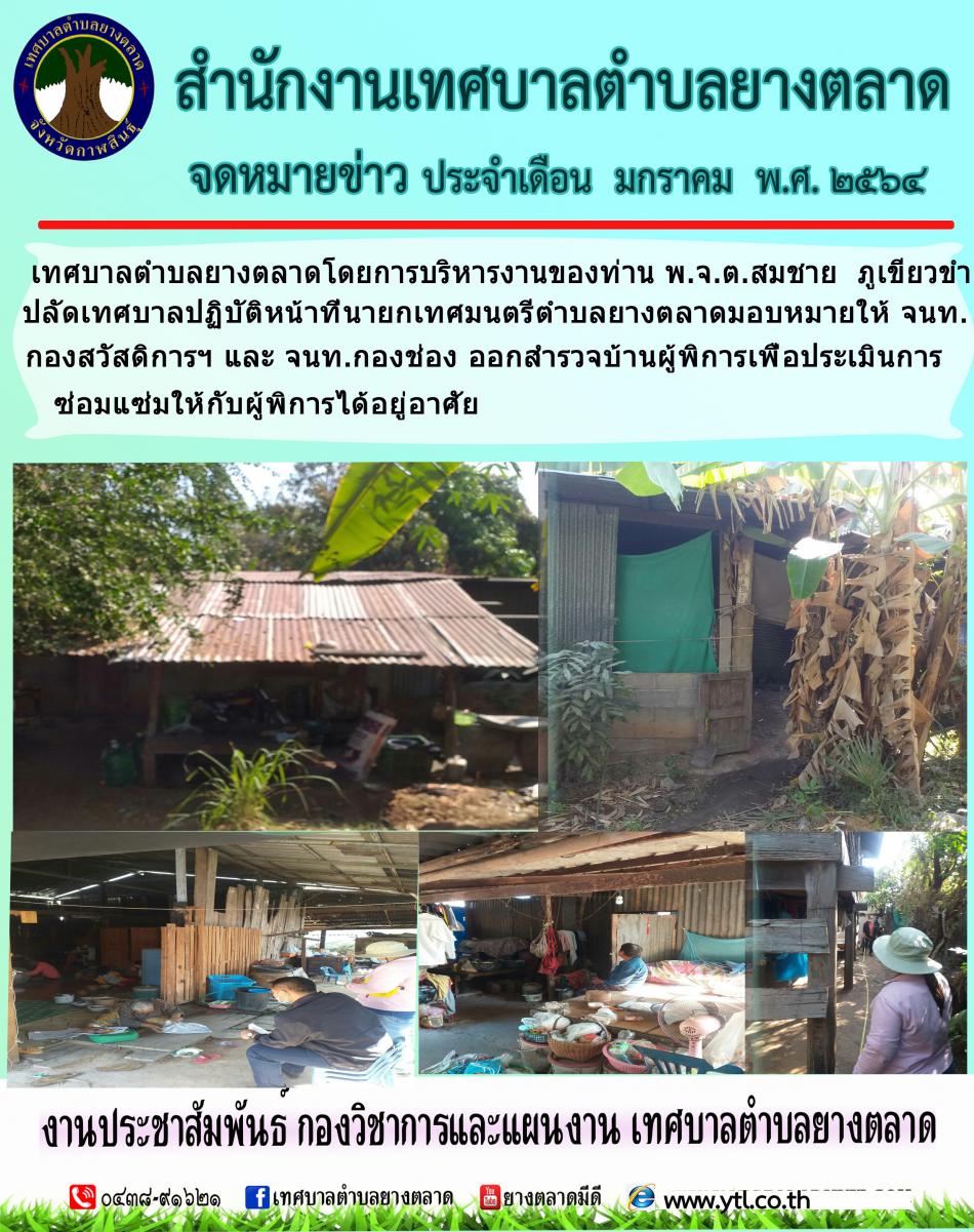กองสวัสดิการฯออกสำรวจบ้านผู้พิการในเขตเทศบาลตำบลยางตลาด