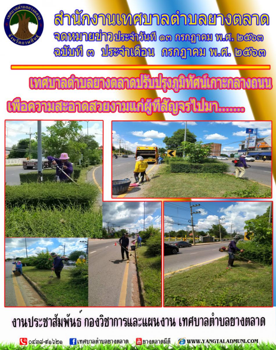 เทศบาลตำบลยางตลาดปรับปรุงภูมิทัศน์เกาะกลางถนน