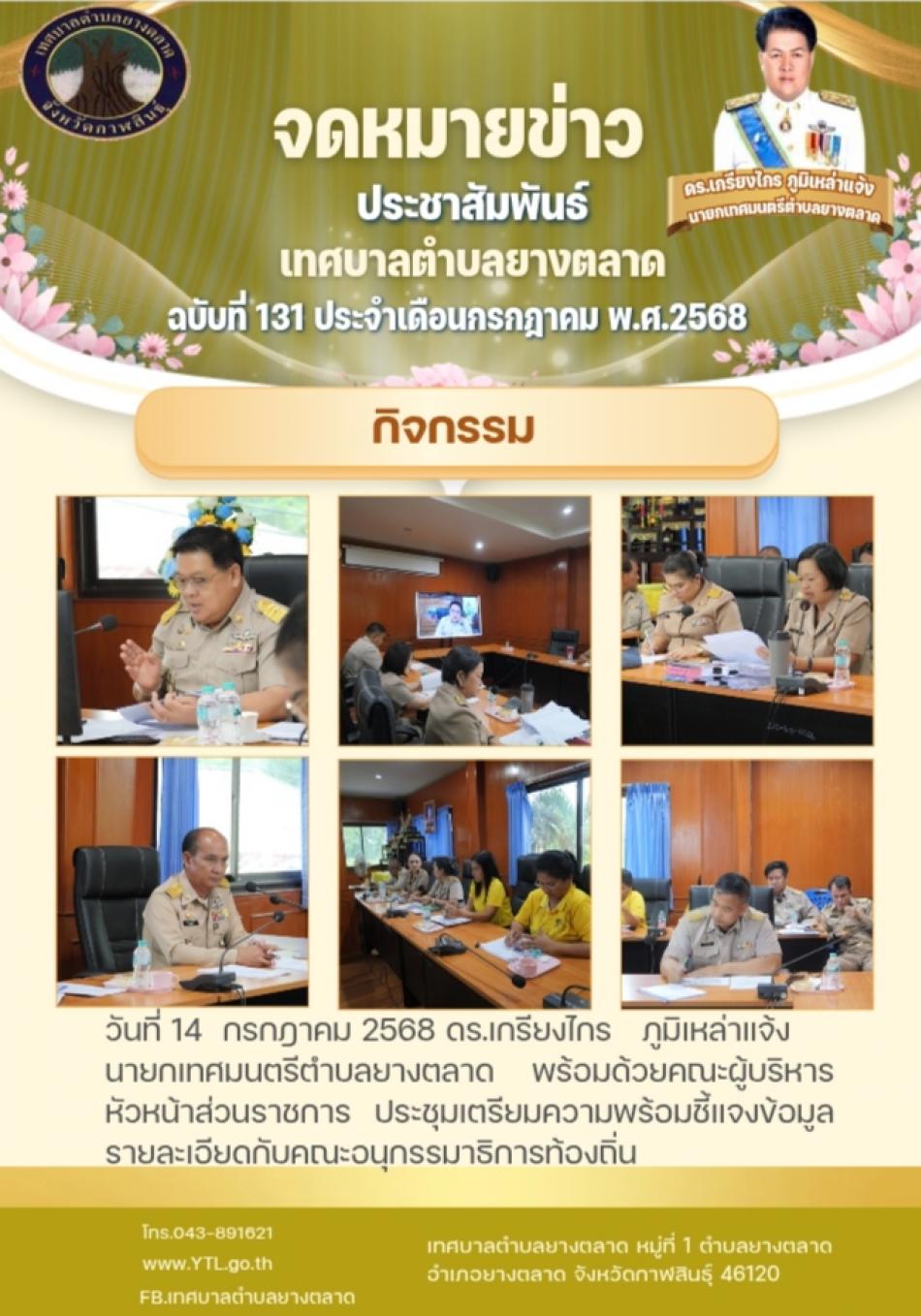 กิจกรรมเทศบาลตำบลยางตลาด [14 กรกฎาคม 2568]