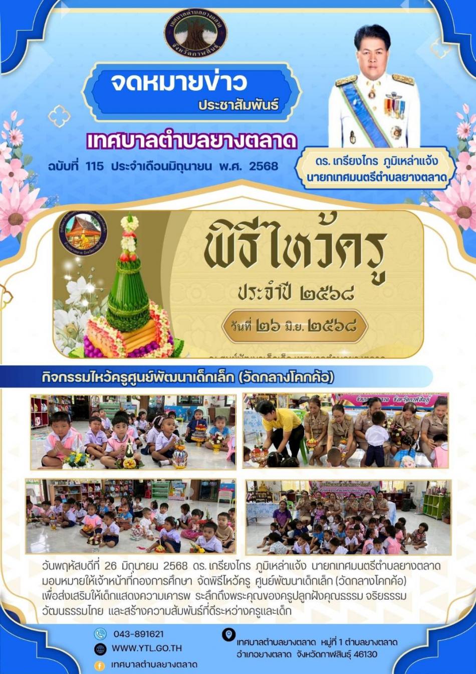 กิจกรรมเทศบาลตำบลยางตลาด [26 มิถุนายน 2568]