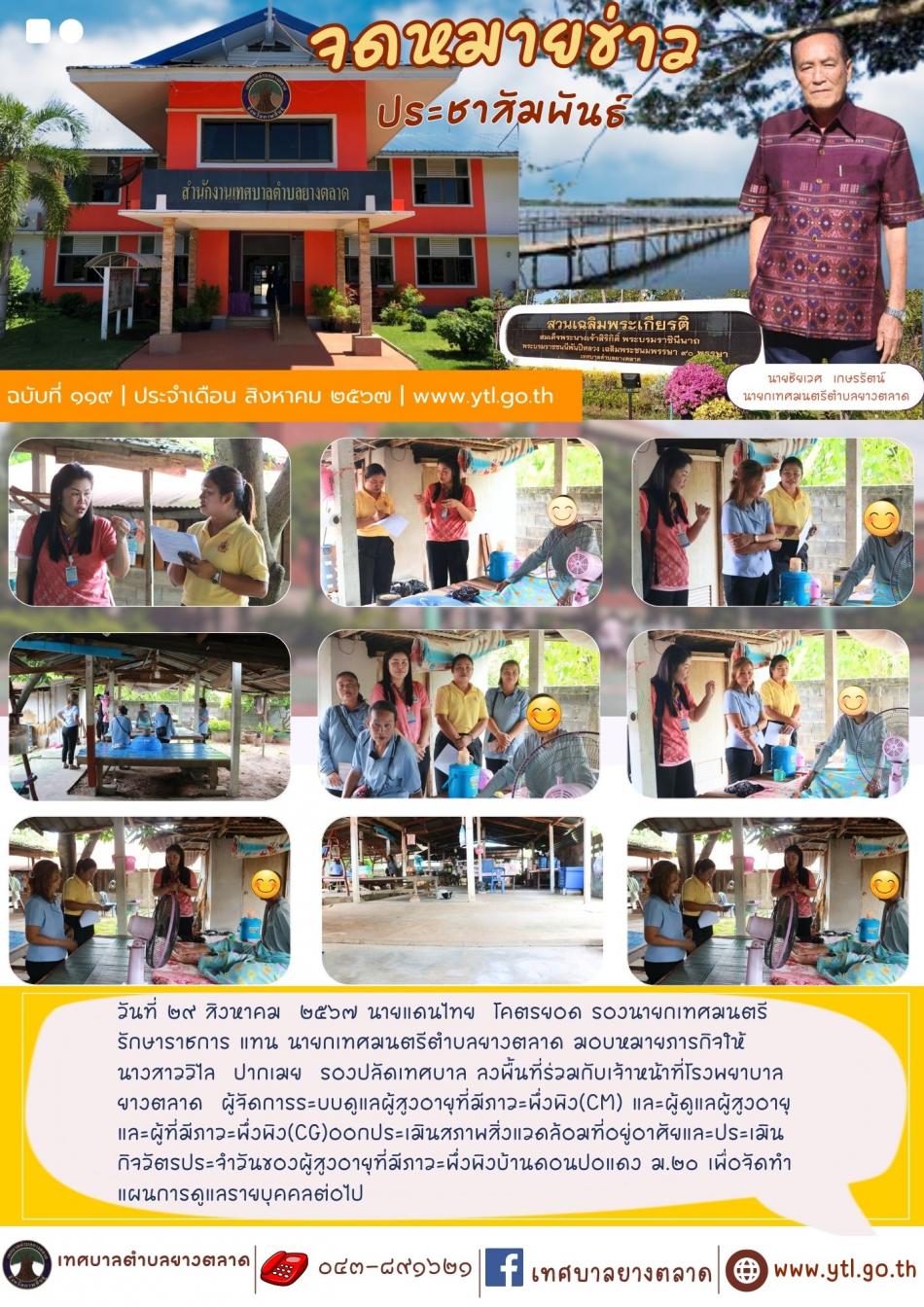 วันที่ ๒๙ สิงหาคม ๒๕๖๗ นายแดนไทย โคตรยอด รองนายกเทศมนตรี รักษาราชการ แทน นายกเทศมนตรีตำบลยางตลาด มอบหมายภารกิจให้ นางสาววิไล ปากเมย รองปลัดเทศบาล ลงพื้นที่ร่วมกับเจ้าหน้าที่โรงพยาบาลยางตลาด ... [29 สิงหาคม 2567]