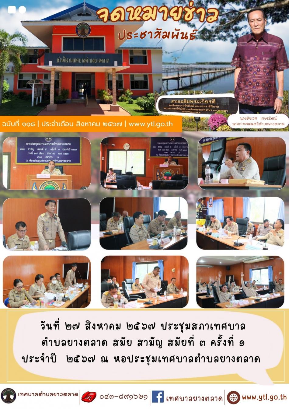 วันที่ ๒๗ สิงหาคม ๒๕๖๗ ประชุมสภาเทศบาล ตำบลยางตลาด สมัย สามัญ สมัยที่ ๓ ครั้งที่ ๑ ประจำปี ๒๕๖๗ ณ หอประชุมเทศบาลตำบลยางตลาด [27 สิงหาคม 2567]