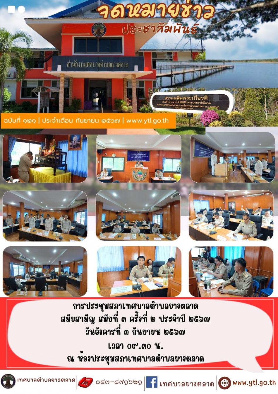 การประชุมสภาเทศบาลตำบลยางตลาด สมัยสามัญ สมัยที่ ๓ ครั้งที่ ๒ ประจำปี ๒๕๖๗ วันอังคารที่ ๓ กันยายน ๒๕๖๗ เวลา ๐๙.๓๐ น. ณ ห้องประชุมสภาเทศบาลตำบลยางตลาด [3 กันยายน 2567]