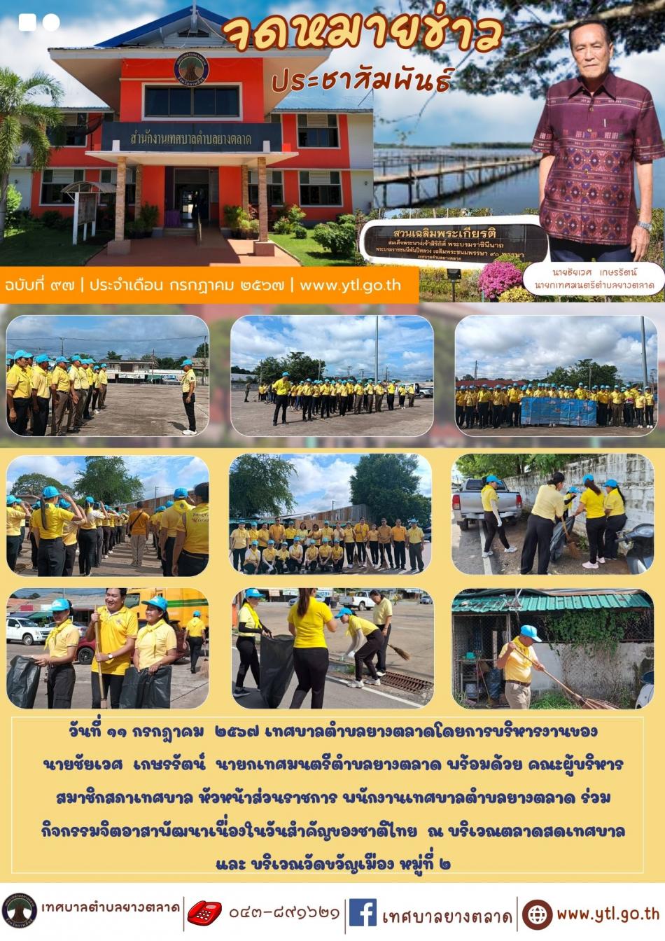 วันที่ ๑๑ กรกฎาคม ๒๕๖๗ เทศบาลตำบลยางตลาดโดยการบริหารงานของ นายชัยเวศ เกษรรัตน์ นายกเทศมนตรีตำบลยางตลาด พร้อมด้วย คณะผู้บริหาร สมาชิกสภาเทศบาล หัวหน้าส่วนราชการ พนักงานเทศบาลตำบลยางตลาด... [11 กรกฎาคม 2567]