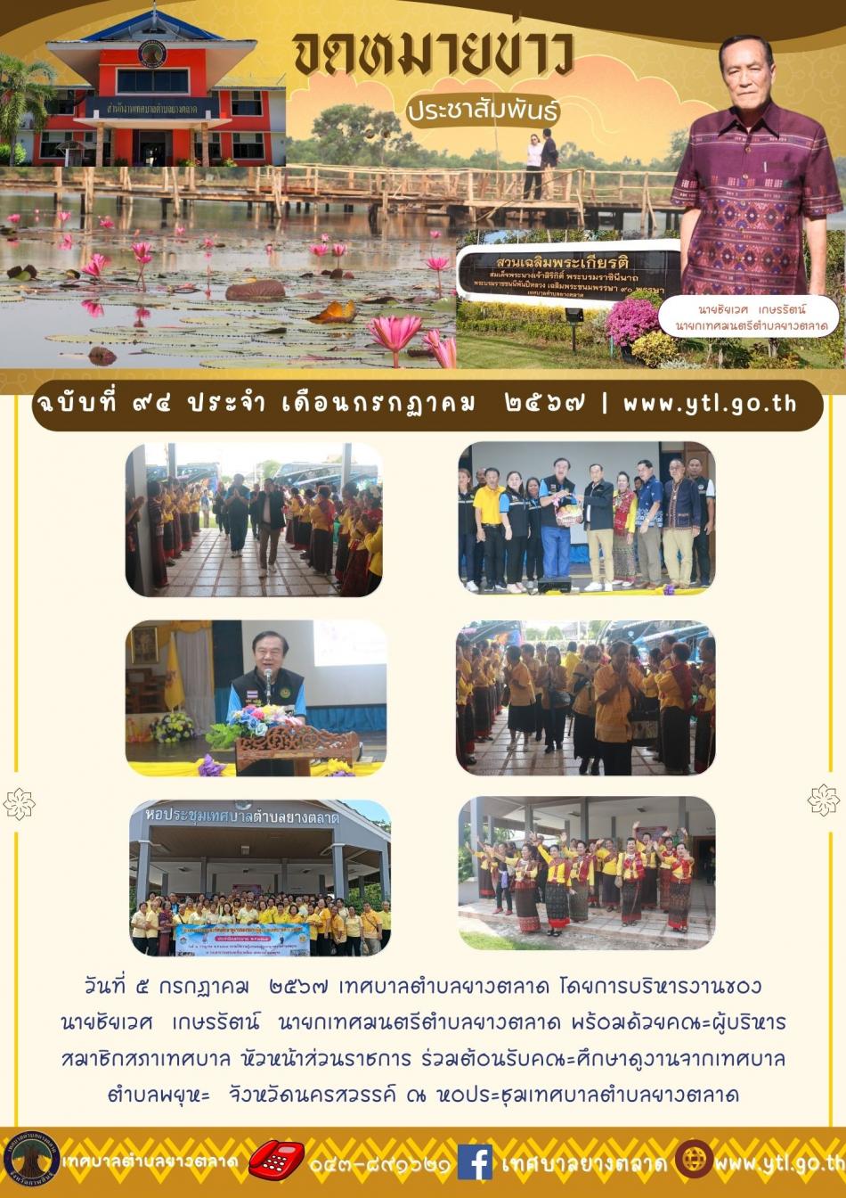 วันที่ ๕ กรกฏาคม ๒๕๖๗ เทศบาลตำบลยางตลาด โดยการบริหารงานของ นายชัยเวศ เกษรรัตน์ นายกเทศมนตรีตำบลยางตลาด พร้อมด้วยคณะผู้บริหาร สมาชิกสภาเทศบาล หัวหน้าส่วนราชการ ร่วมต้อนรับคณะศึกษาดูงานจากเทศบาลตำบลพยุหะ ... [5 กรกฎาคม 2567]