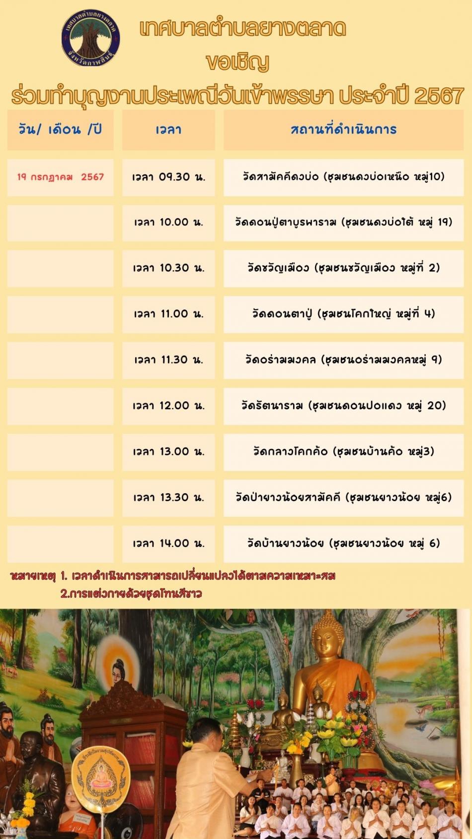 ขอเชิญร่วมทำบุญงานประเพณีวันเข้าพรรษา ประจำปี ๒๕๖๗ [5 กรกฎาคม 2567]