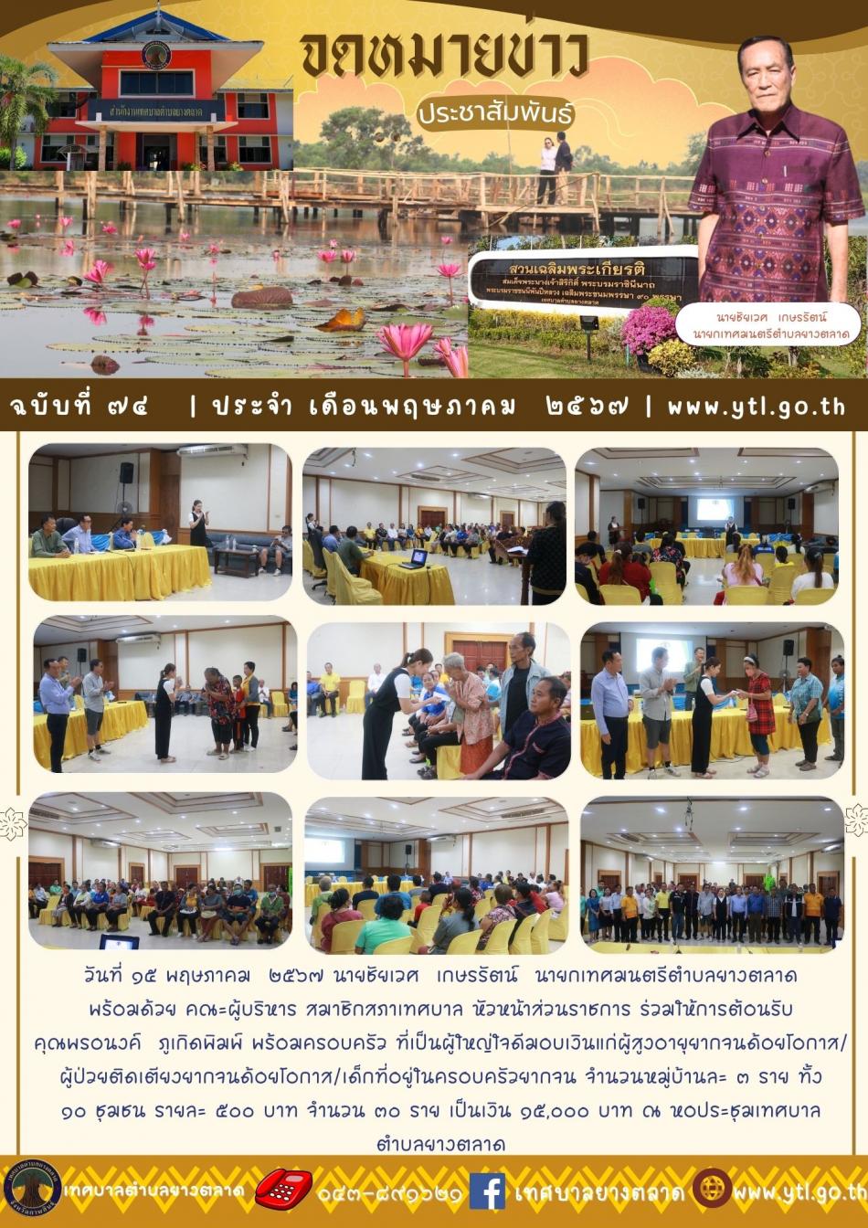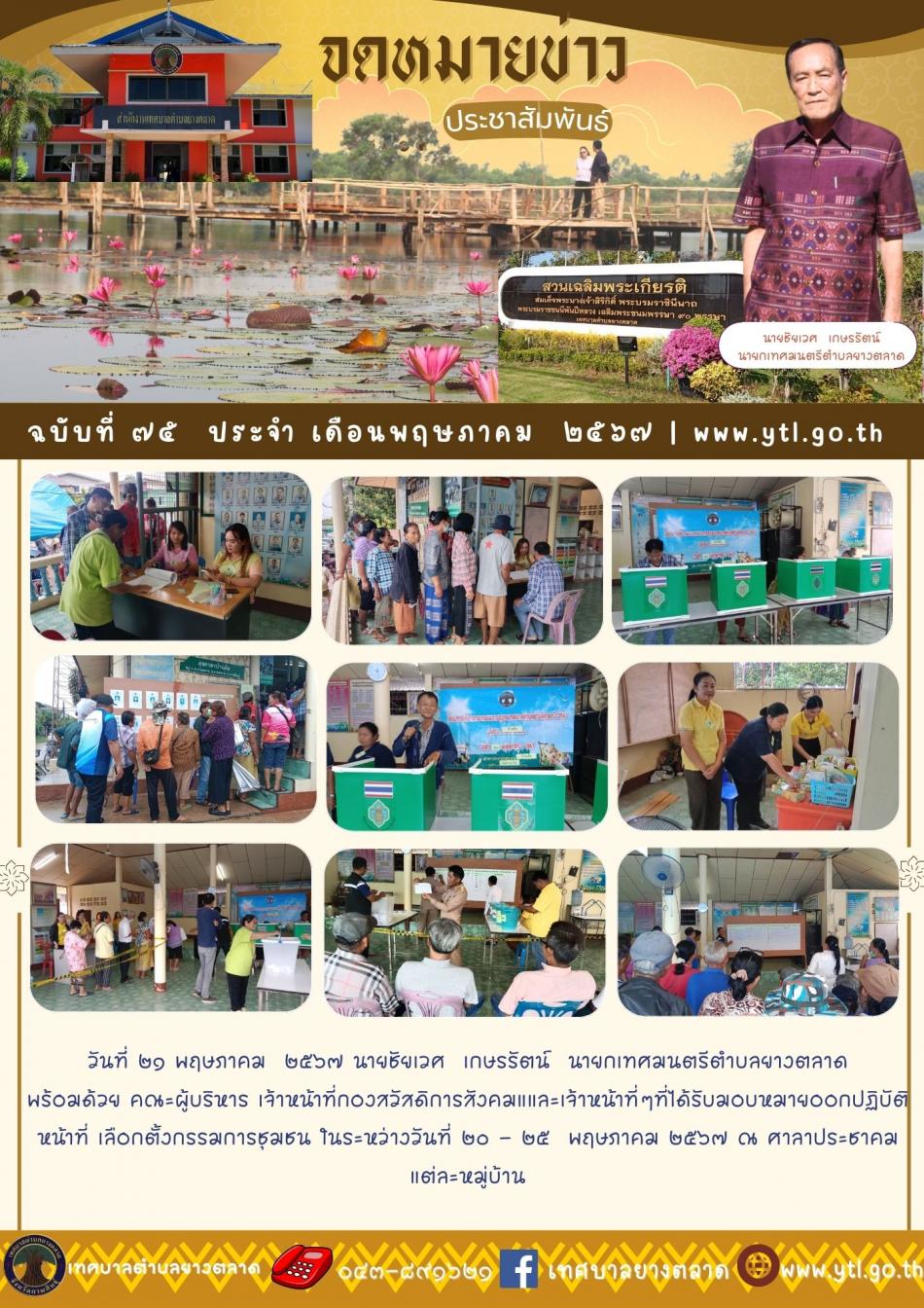วันที่่ ๒๑ พฤษภาคม ๒๕๖๗ นายชัยเวศ เกษรรัตน์ นายกเทศมนตรีตำบลยางตลาด พร้อมด้วย คณะผู้บริหาร เจ้าหน้าที่กองสวัสดิการสังคมแและเจ้าหน้าที่ๆที่ได้รับมอบหมายออกปฏิบัติหน้าที่ เลือกตั้งกรรมการชุมชน... [21 พฤษภาคม 2567]