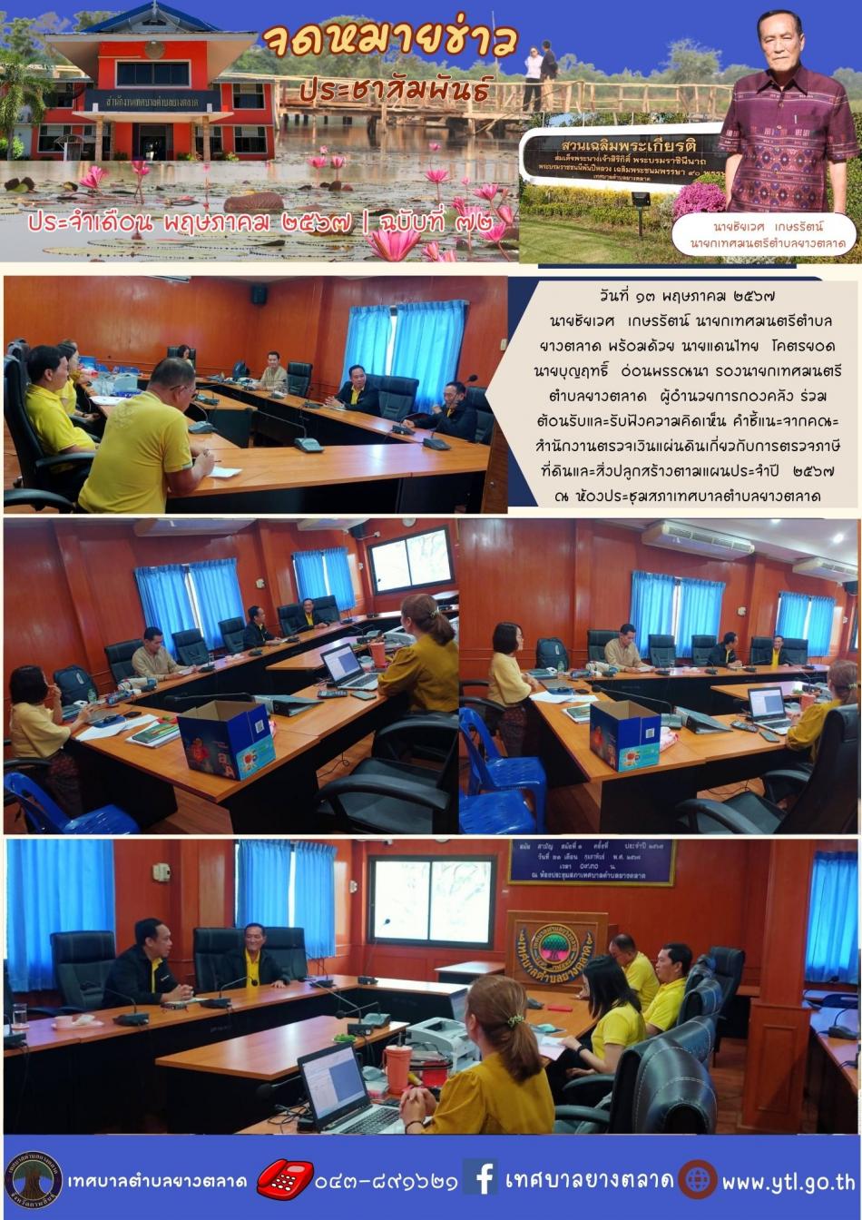 วันที่ ๑๓ พฤษภาคม ๒๕๖๗ นายชัยเวศ เกษรรัตน์ นายกเทศมนตรีตำบลยางตลาด พร้อมด้วย นายแดนไทย โคตรยอด นายบุญฤทธิ์ อ่อนพรรณนา รองนายกเทศมนตรีตำบลยางตลาด ผู้อำนวยการกองคลัง ร่วมต้อนรับและรับฟังความคิดเห็น... [13 พฤษภาคม 2567]