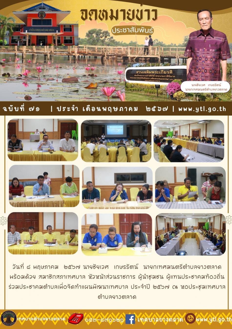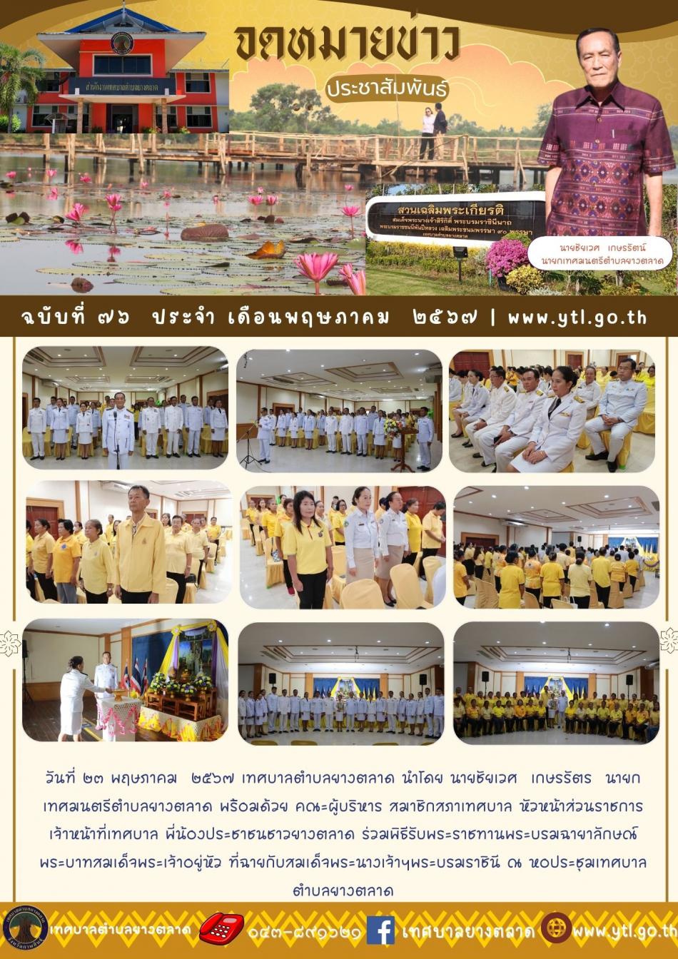 วันที่่ ๒๓ พฤษภาคม ๒๕๖๗ เทศบาลตำบลยางตลาด นำโดย นายชัยเวศ เกษรรัตร นายกเทศมนตรีตำบลยางตลาด พร้ิอมด้วย คณะผู้บริหาร สมาชิกสภาเทศบาล หัวหน้าส่วนราชการ เจ้าหน้าที่เทศบาล พี่น้องประชาชนชาวยางตลาด... [23 พฤษภาคม 2567]