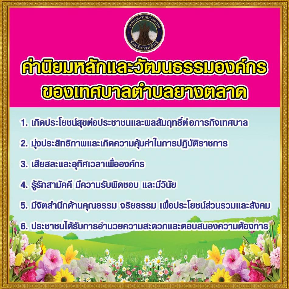 ค่านิยมหลักและวัฒนธรรมองค์กรของเทศบาลตำบลยางตลาด [11 กันยายน 2566]