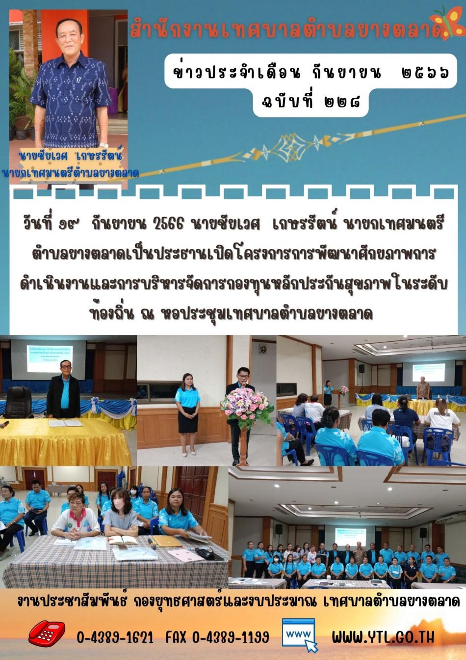 วันที่ ๑๙ กันยายน 2566 นายชัยเวศ เกษรรัตน์ นายกเทศมนตรีตำบลยางตลาดเป็นประธานเปิดโครงการการพัฒนาศักยภาพการดำเนินงานและการบริหารจัดการกองทุนหลักประกันสุขภาพในระดับท้องถิ่น ณ หอประชุมเทศบาลตำบลยางตลาด [19 กันยายน 2566]