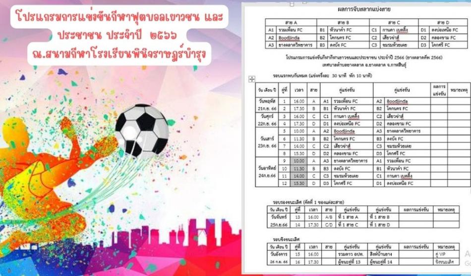 โปรแกรมการแข่งขันกีฬสฟุตบอลเยาวชน และ ประชาชน ประจำปี ๒๕๖๖ [21 กันยายน 2566]