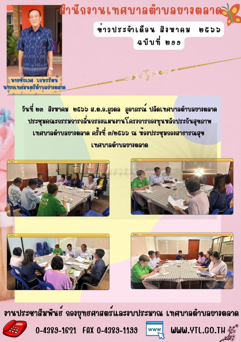 วันที่ ๒๓ สิงหาคม ๒๕๖๖ ส.ต.อ.ภูวดล ภูอาภรณ์ ปลัดเทศบาลตำบลยางตลาด ประชุมคณะกรรมการกลั่นกรองแผนงานโครงการกองทุนหลักประกันสุขภาพเทศบาลตำบลยางตลาด ครั้งที่ ๓/๒๕๖๖ ณ ห้องประชุมกองสาธารณสุข เทศบาลตำบลยางตลาด [23 สิงหาคม 2566]