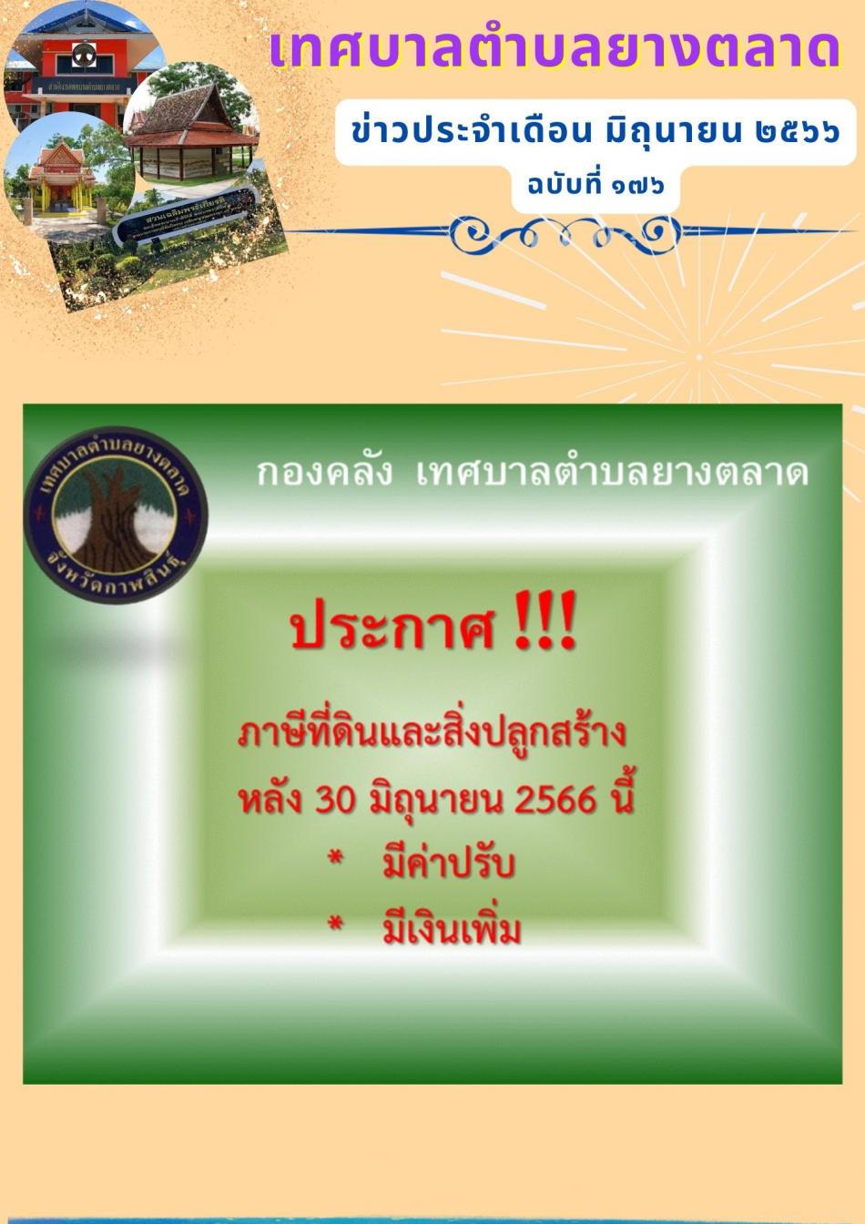 ข่าวประชาสัมพันธ์งานพัฒนาและจัดเก็บรายได้ กองคลังเทศบาลตำบลยางตลาด [20 มิถุนายน 2566]
