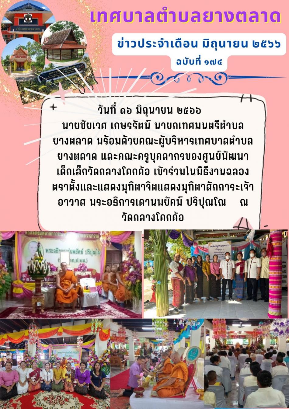 วันที่ ๑๖ มิถุนายน ๒๕๖๖ นายชัยเวศ เกษรรัตน์ นายกเทศมนตรีตำบลยางตลาด พร้อมด้วยคณะผู้บริหารเทศบาลตำบลยางตลาด และคณะครูบุคลากรของศูนย์พัฒนาเด็กเล็กวัดกลางโคกค้อ... [16 มิถุนายน 2566]