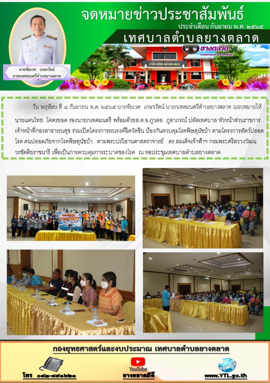 วันพฤหัสบดี ที่ ๒๕ สิงหาคม ๒๕๖๕ นายชัยเวศ เกษรรัตน์ นายกเทศมนตรีตำบลยางตลาดประธานเปิดโครงการรณรงค์ป้องกันยาเสพติด ต้านทุจริตคอรัปชั่น ณ ห้องประชุมม่วงขาว โรงเรียนยางตลาดวิทยาคาร [25 สิงหาคม 2565]