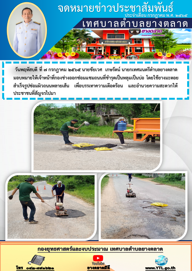 ซ่อมแซมถนนที่ชำรุดเป็นหลุมเป็นบ่อ [7 กรกฎาคม 2565]