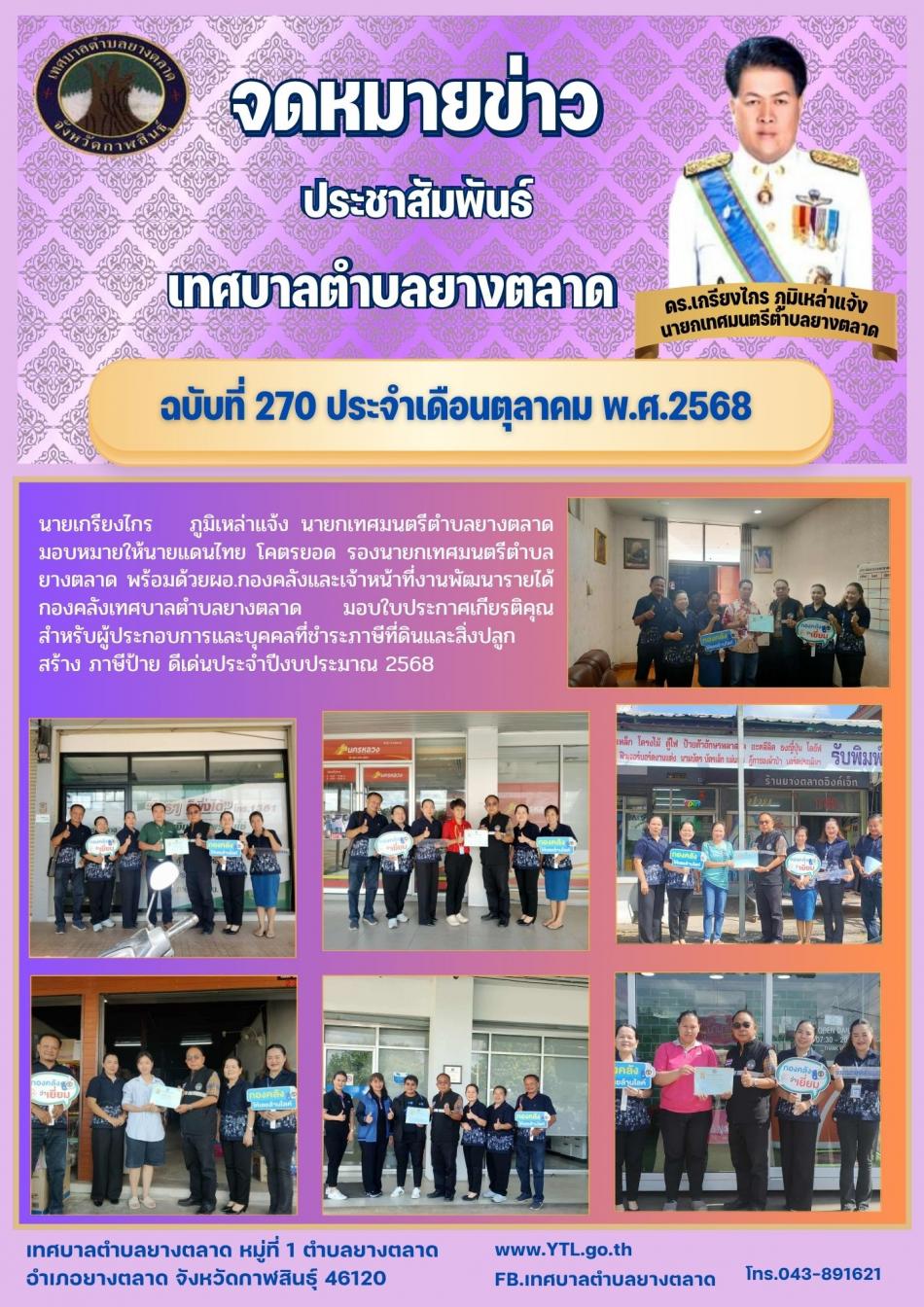 กิจกรรมเทศบาลตำบลยางตลาด [3 ตุลาคม 2568]