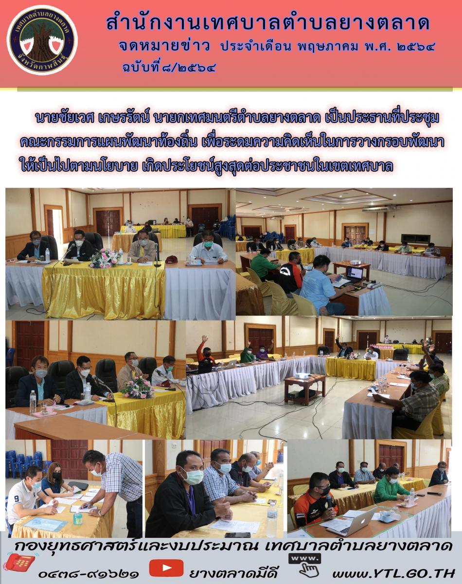 วันที่ 30 มิถุนายน 2564 นายชัยเวศ เกษรรัตน์ นายกเทศมนตรีตำบลยางตลาด ประธานที่ประชุมคณะกรรมการแผนพัฒนาท้องถิ่น... [30 มิถุนายน 2564]