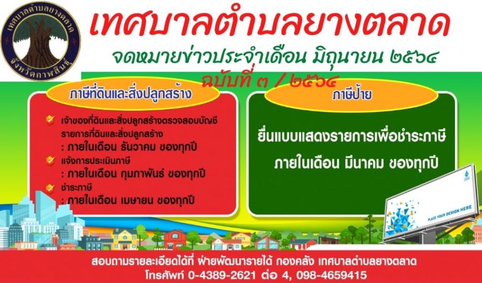 ยินดีต้อนรับ เข้าสู่เว็บไซต์ เทศบาลตำบลยางตลาด อำเภอยางตลาด จังหวัดกาฬสินธุ์