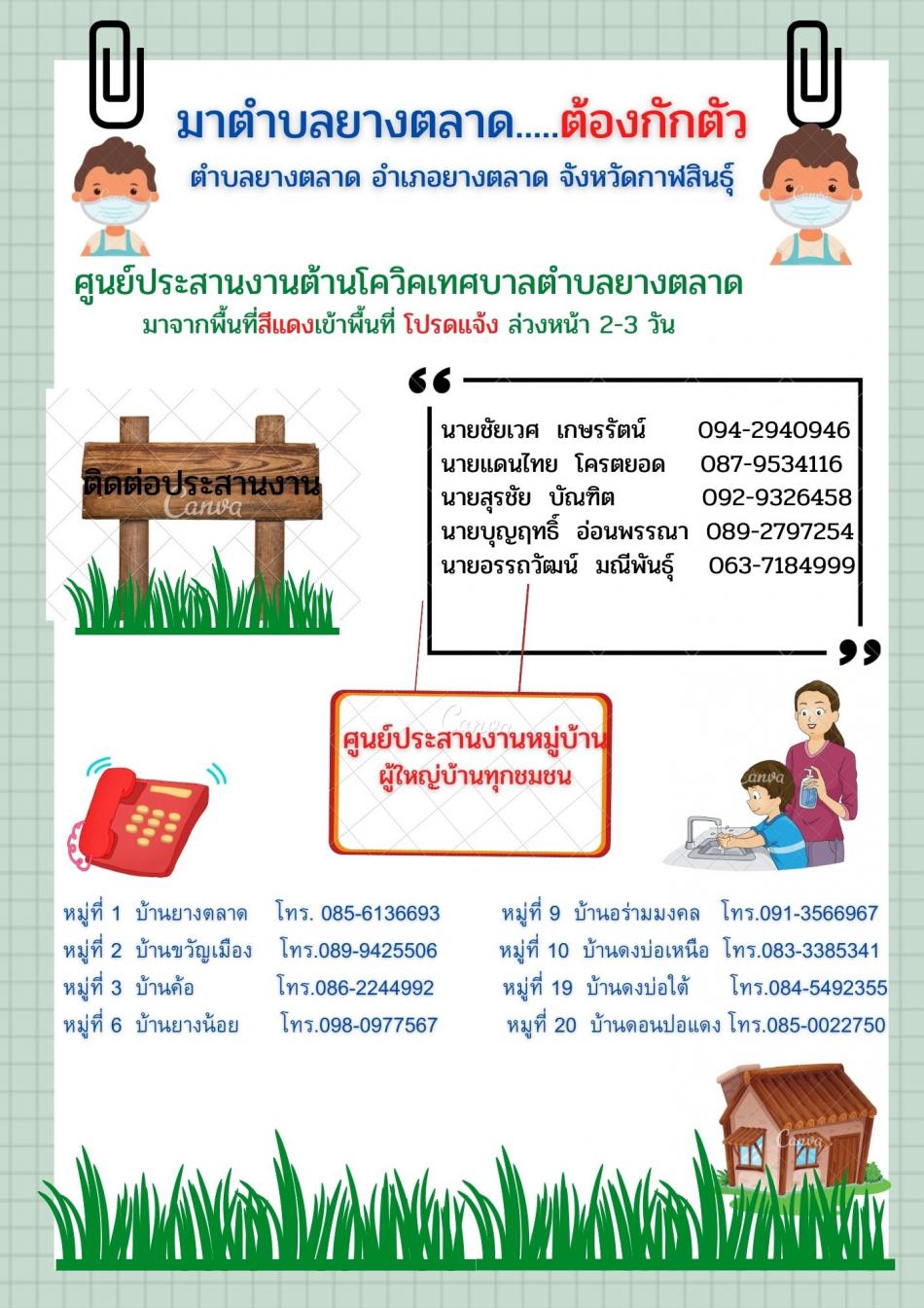 ศูนย์ประสานงานต้านโควิคเทศบาลตำบลยางตลาด [14 กรกฎาคม 2564]