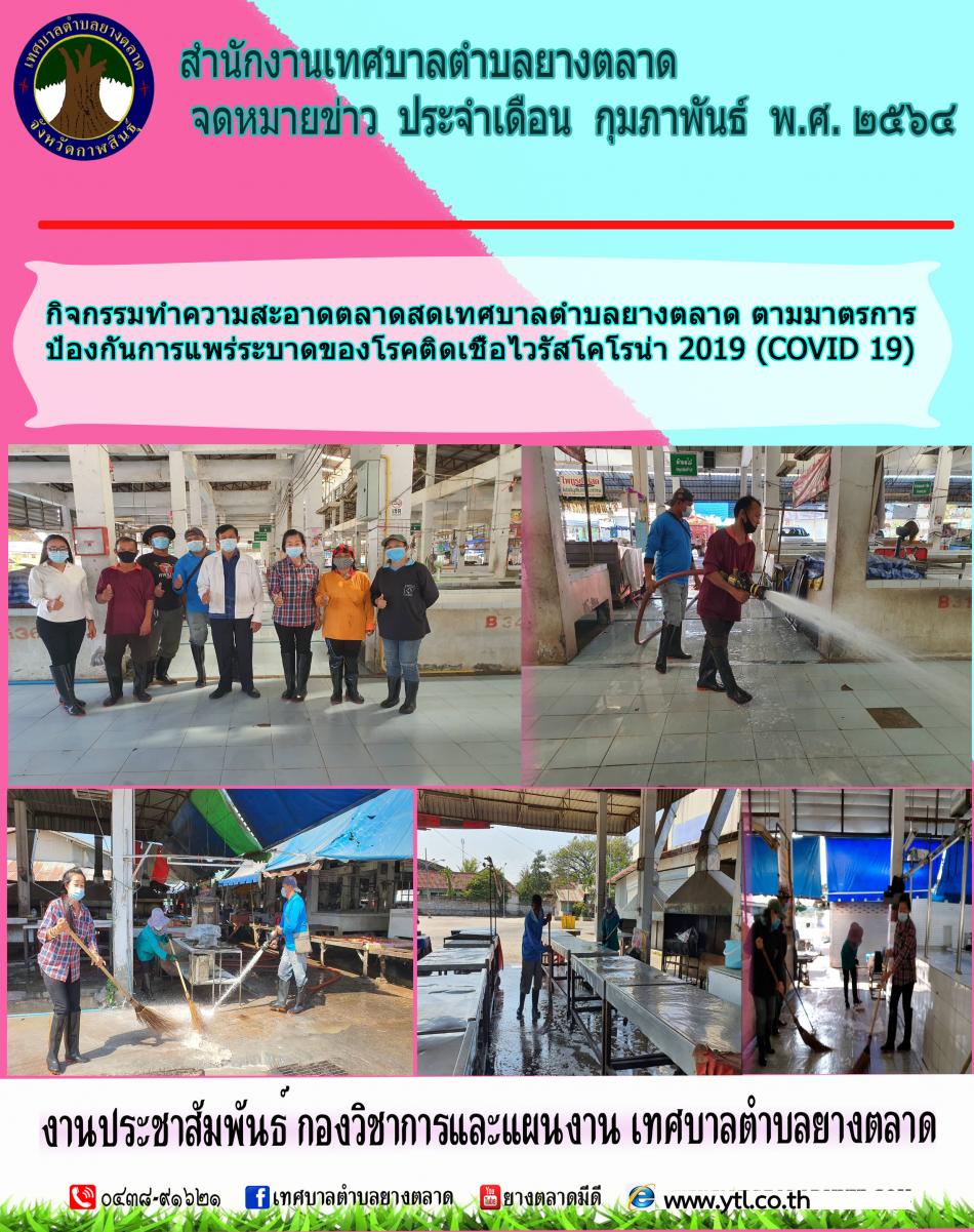 กิจกรรมการทำความสะอาดตลาดสดเทศบาลตำบลยางตลาดตามมาตราการป้องกันการแพร่ระบาดของโรคติดเชื้อไวรัสโคโรน่า 2019