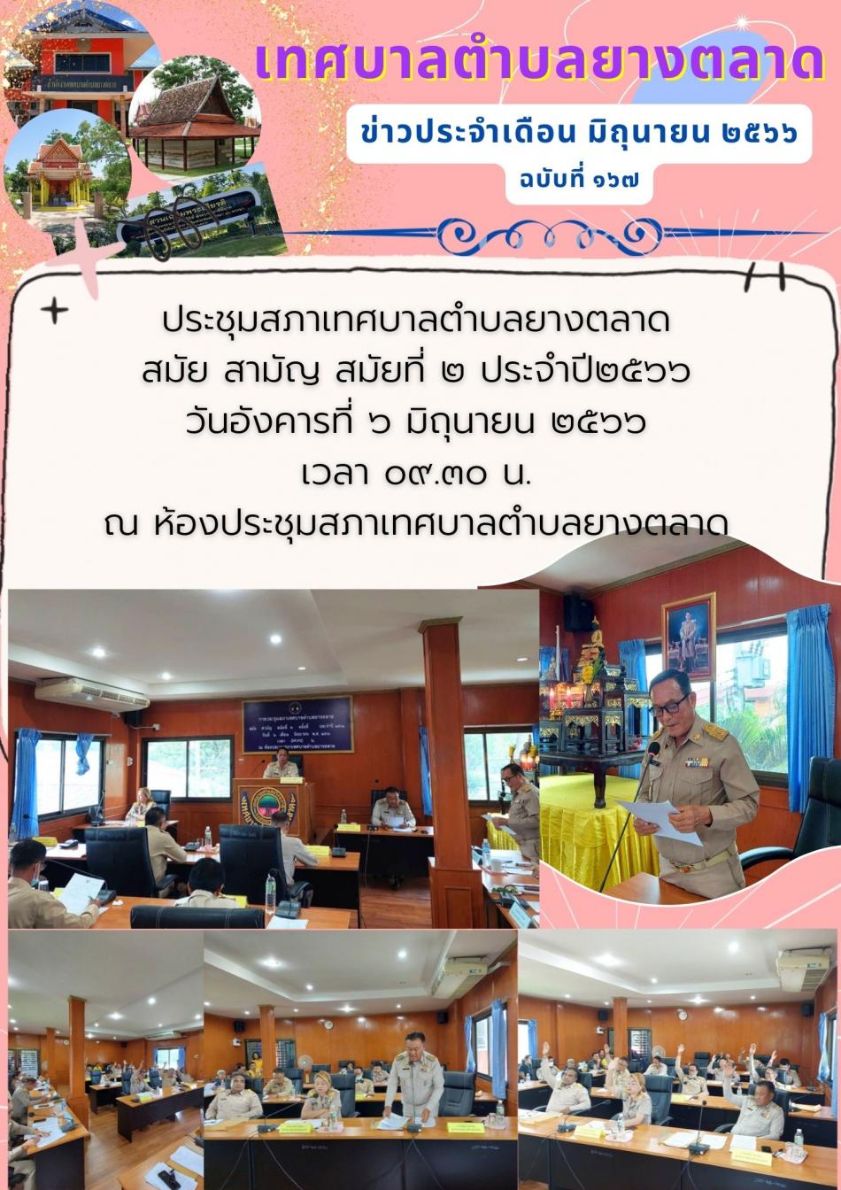 ประชุมสภาเทศบาลตำบลยางตลาด สมัย สามัญ สมัยที่ ๒ ประจำปี๒๕๖๖ วันอังคารที่ ๖ มิถุนายน ๒๕๖๖ เวลา ๐๙.๓๐ น. ณ ห้องประชุมสภาเทศบาลตำบลยางตลาด [6 มิถุนายน 2566]