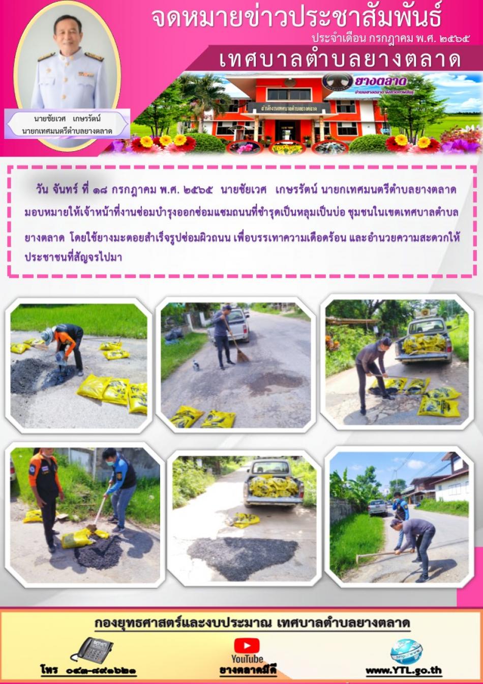 ซ่อมแซมถนนที่ชำรุดเป็นหลุมเป็นบ่อ [18 กรกฎาคม 2565]