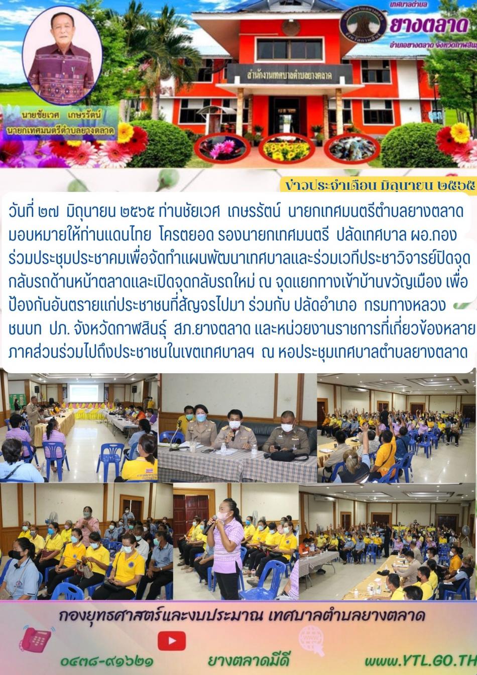 วันที่ ๒๗ มิถุนายน ๒๕๖๕ ท่านชัยเวศ เกษรรัตน์ นายกเทศมนตรีตำบลยางตลาด มอบหมายให้ท่านแดนไทย โครตยอด รองนายกเทศมนตรี ปลัดเทศบาล... [27 มิถุนายน 2565]