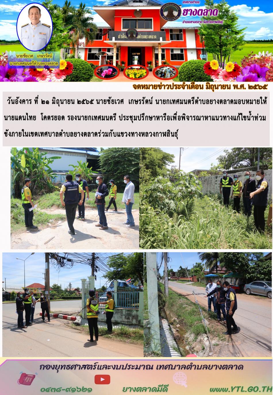 พิจารณาหาแนวทางแก้ไขน้ำท่วมขังภายในเขตเทศบาลตำบลยางตลาด [21 มิถุนายน 2565]