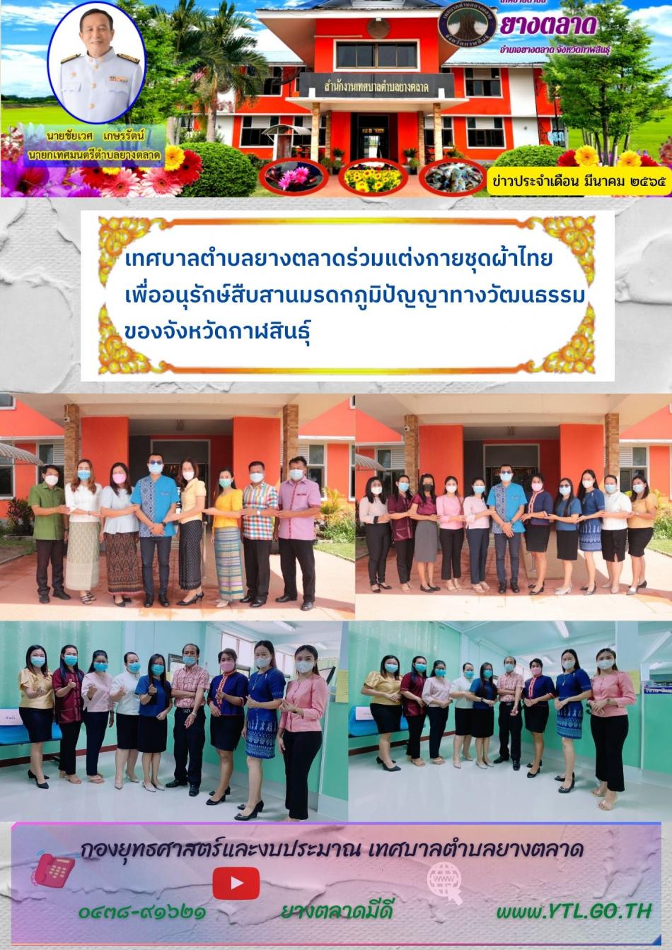 เทศบาลตำบลยางตลาดร่วมแต่งกายชุดผ้าไทยเพื่ออนุรักษ์สืบสานมรดกภูมิปัญญาทางวัฒนธรรมของจังหวัดกาฬสินธุ์ [23 มีนาคม 2565]