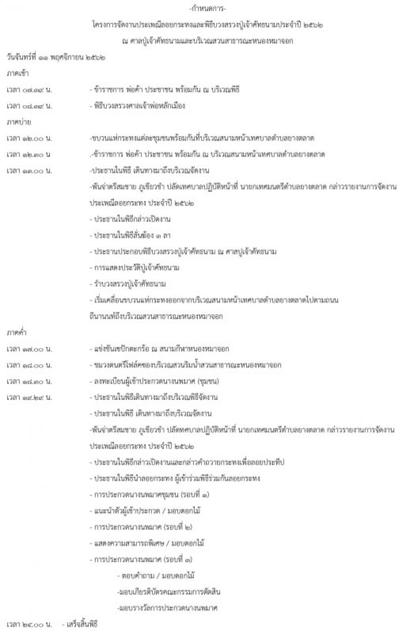 ขอเชิญเที่ยวงานประเพณีลอยกระทง และพิธีบวงสรวงปู่เจ้าคัทธนามประจำปี 2562