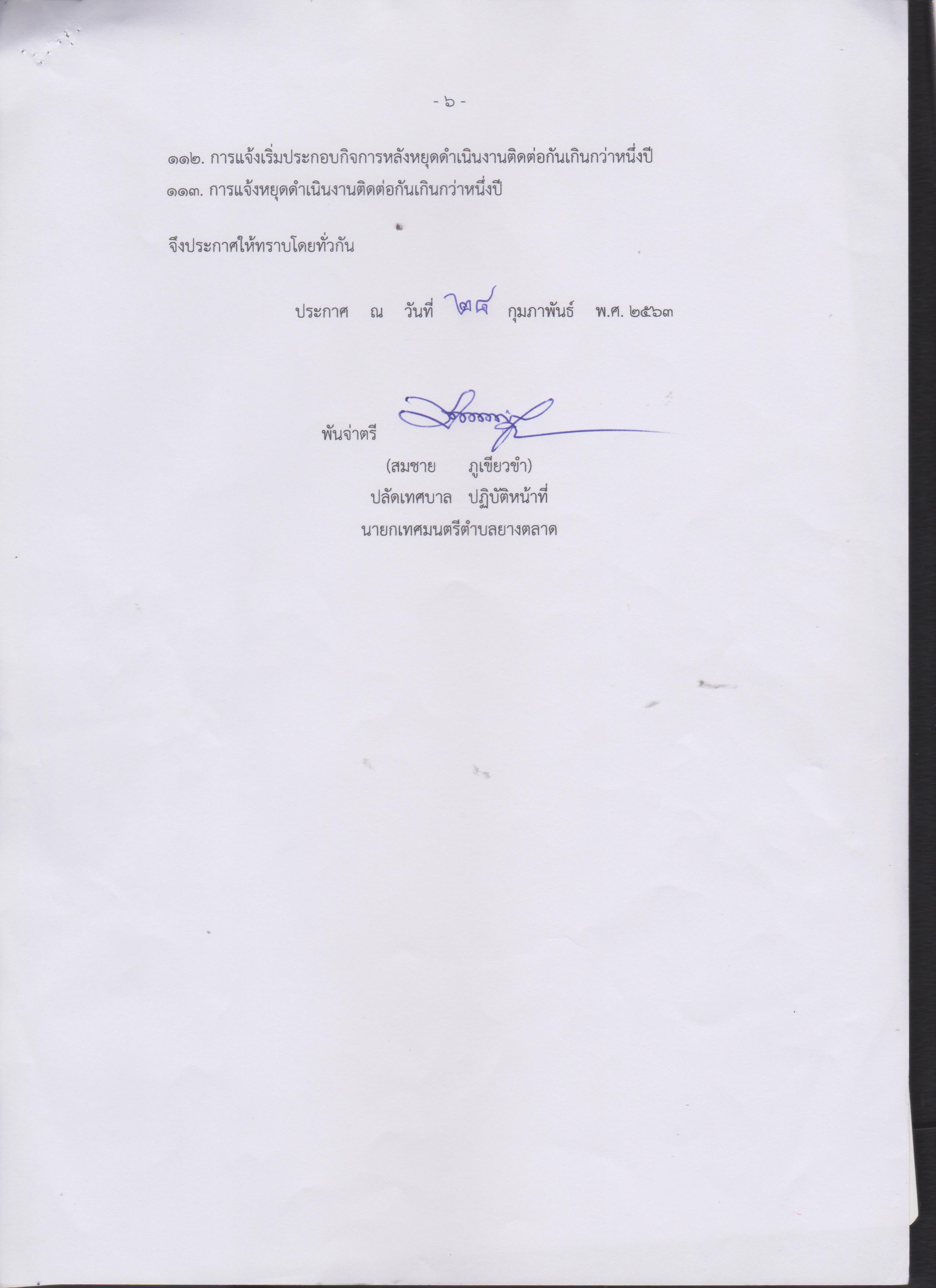 ประกาศเทศบาลตำบลยางตลาด เรื่อง การปรับปรุงคู่มือสำหรับประชาชน ระยะที่ 2
