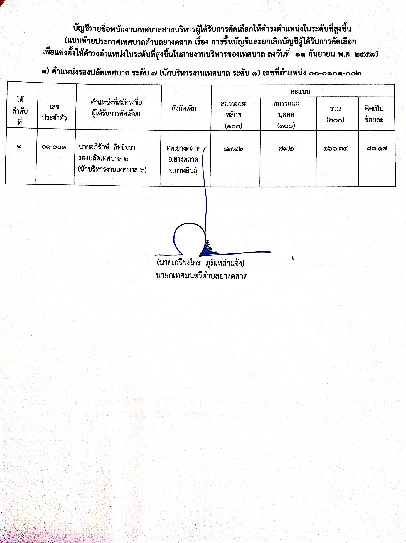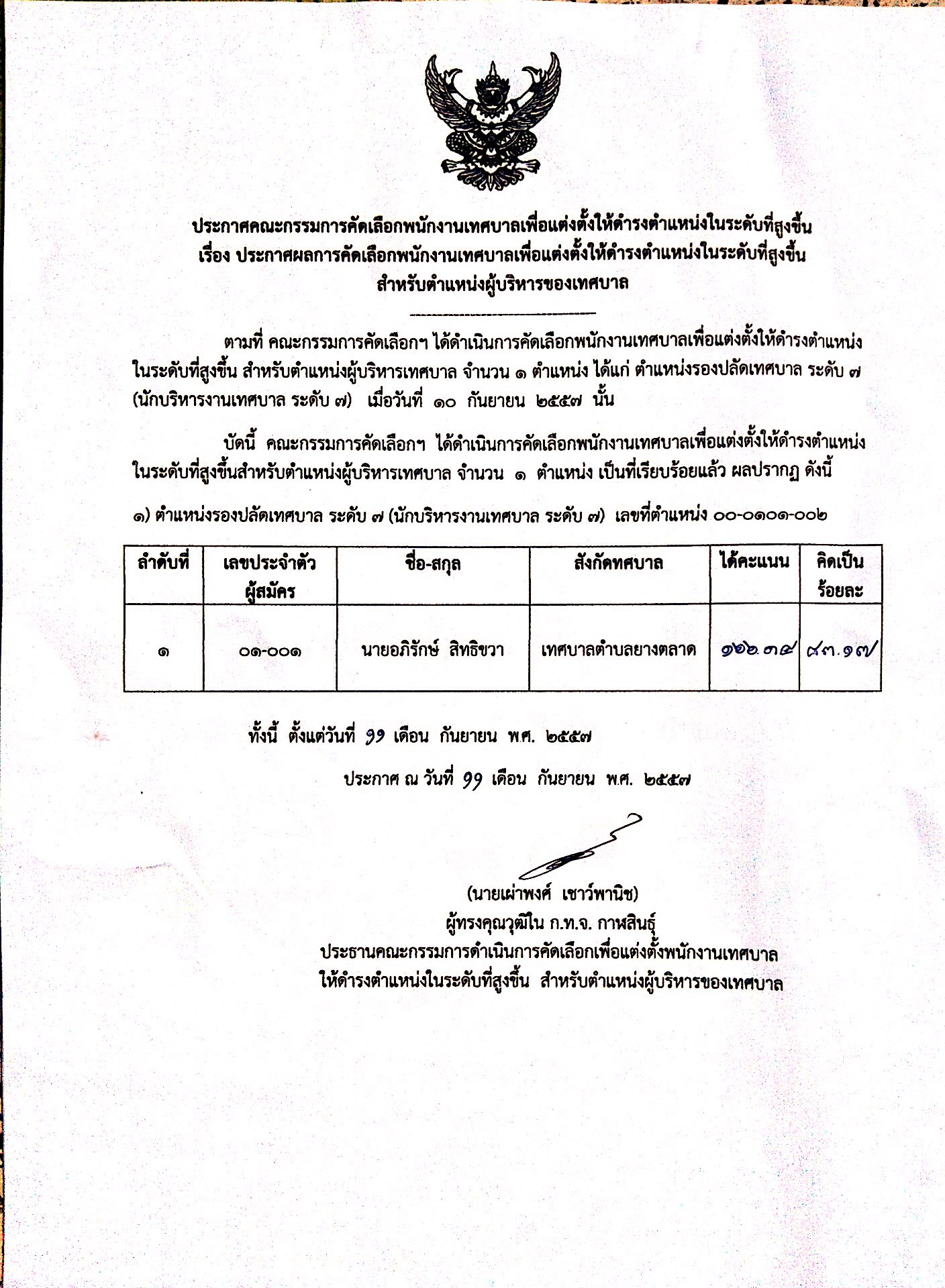 ประกาศคณะกรรมการคัดเลือกพนักงานเทศบาลเพื่อแต่งตั้งให้ดำรงตำแหน่งในระดับที่สูงขึ้น