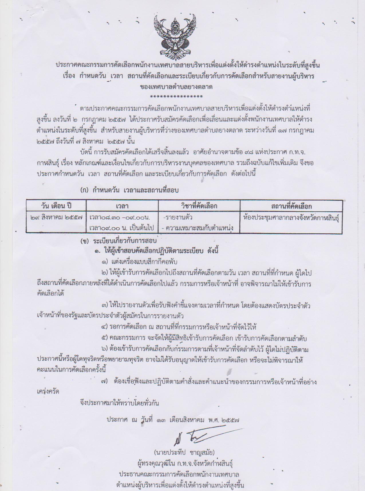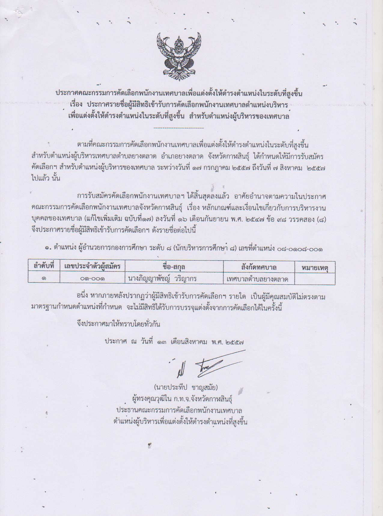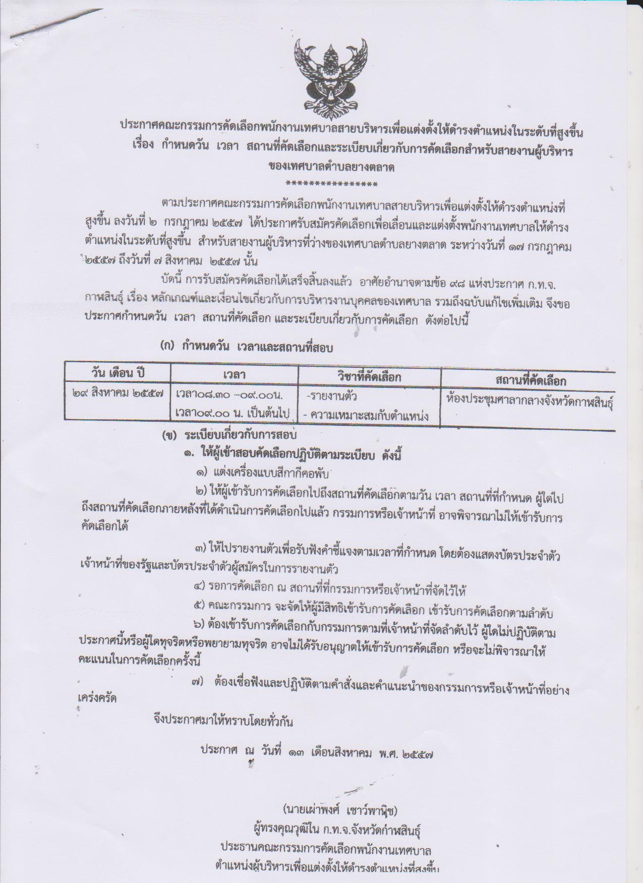 ประกาศคณะกรรมการคัดเลืือกพนักงานเทศบาลเพื่อแต่งตั้งให้ดำรงตำแหน่งในระดับที่สูงขึ้น