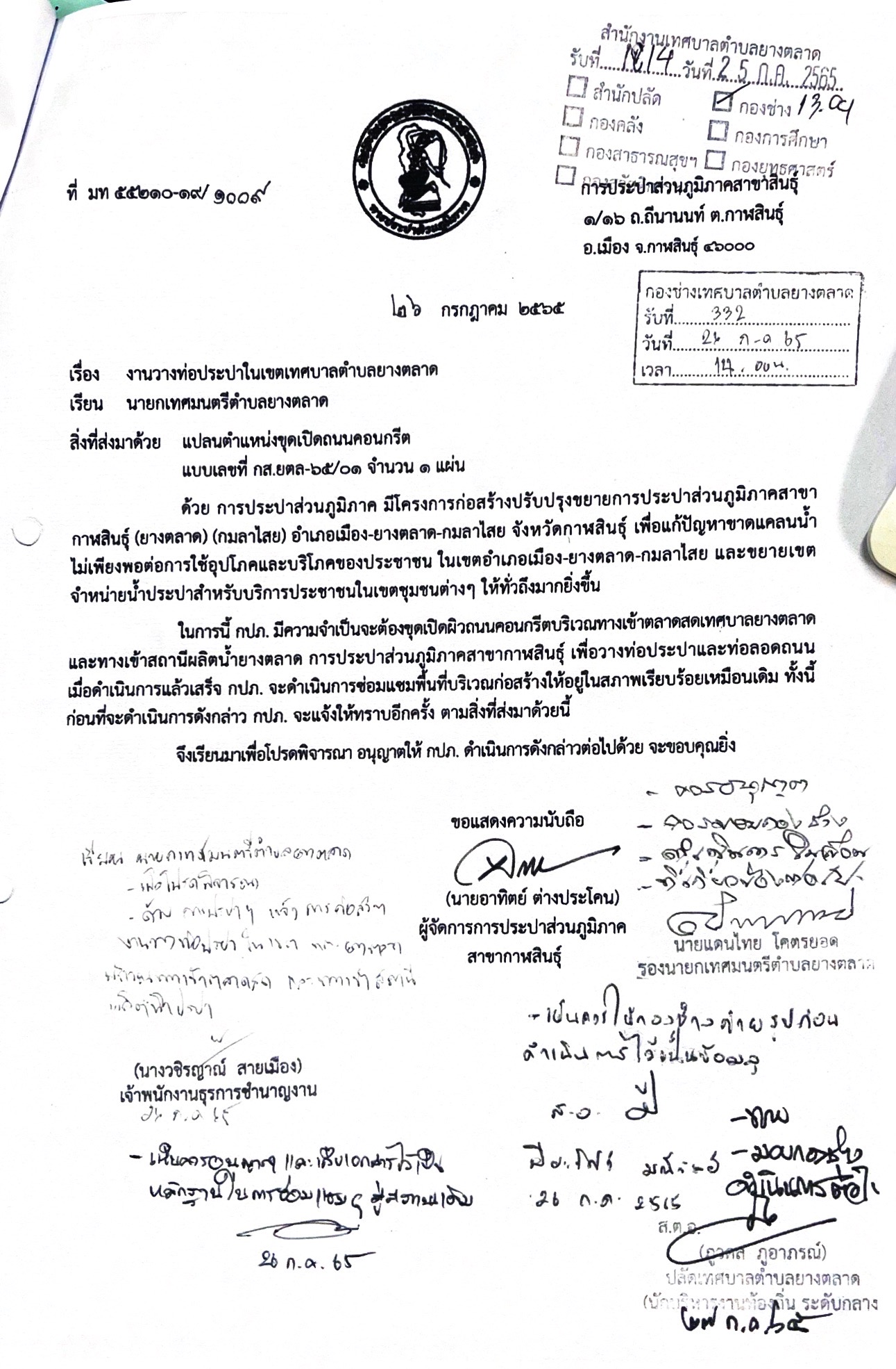 ประชาสัมพันธ์งานวางท่อประปาในเขตเทศบาลตำบลยางตลาด