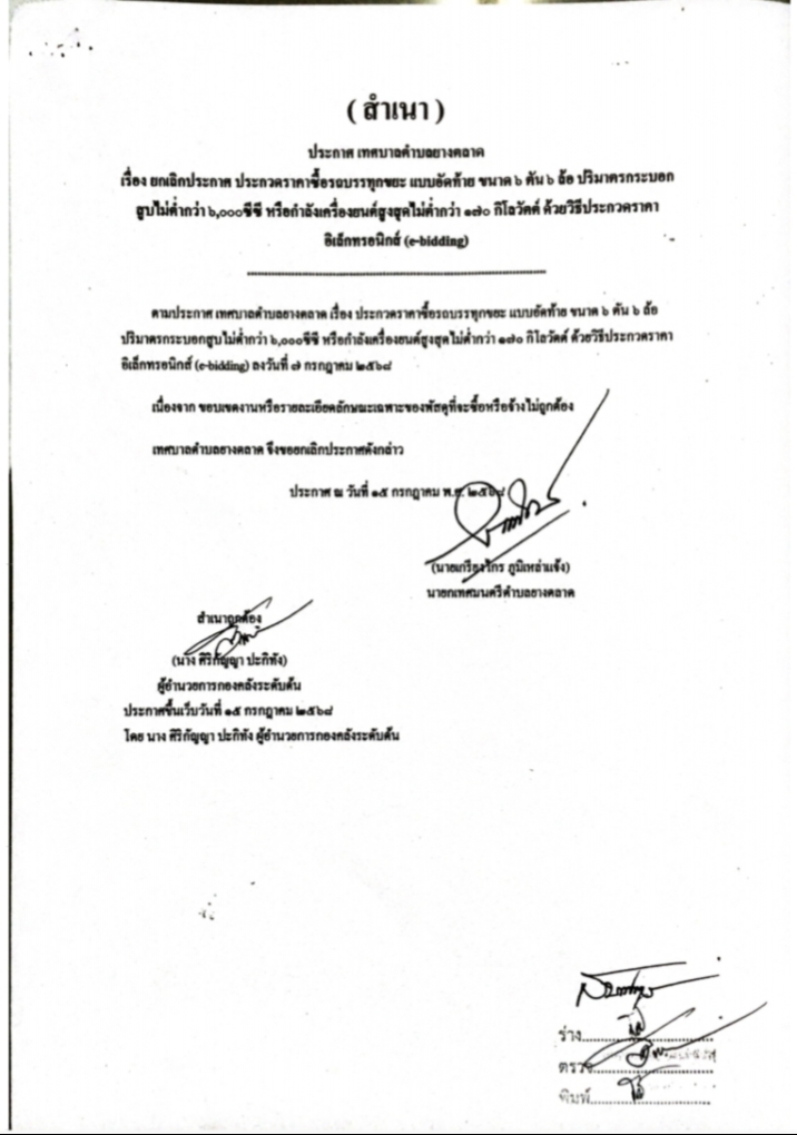 ยกเลิกประกาศประกวดราคาซื้อรถบรรทุกขยะ